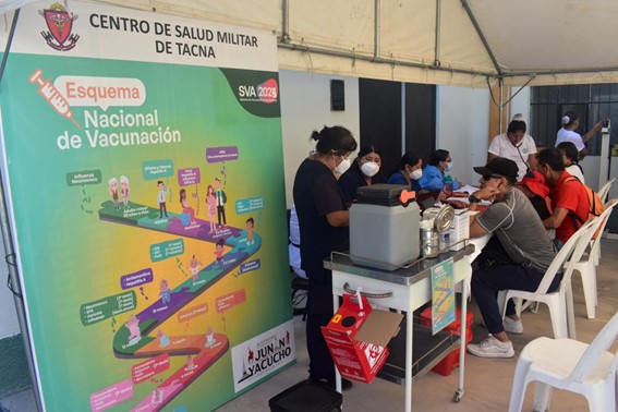 El Área de salud de la Asociación de Damas Voluntarias del Ejército del Perú, filial Tacna, en coordinación con el Centro de Salud Militar de la 3ra Brigada de Caballería, desarrolló una campaña de salud gratuita, dirigida a todo el personal de Oficiales, Técnicos y Suboficiales, Tropa y Empleados Civiles de las diferentes GGUU, PPUU, Dependencias de la guarnición y comunidad de la región de Tacna, a fin de prevenir enfermedades.