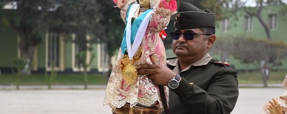 La sagrada imagen de nuestro Divino Niño Jesús visitó las instalaciones del Comando de Educación y Doctrina del Ejército - COEDE, como parte de su peregrinación en este último día de la Novena, donde fue recibido por el Gral Brig Elio Monteza Becerra, Inspector del COEDE, acompañado de las señoras damas integrantes de la Asociación de Damas Voluntarias EP, quienes participaron del pasacalle portando al niño Jesús, derramando bendiciones a su paso, recibiendo también las muestras de cariño del personal militar, personal civil y damas voluntarias que se congregaron en este recinto para participar de la misa oficiada por el Padre Francisco Ibáñez.